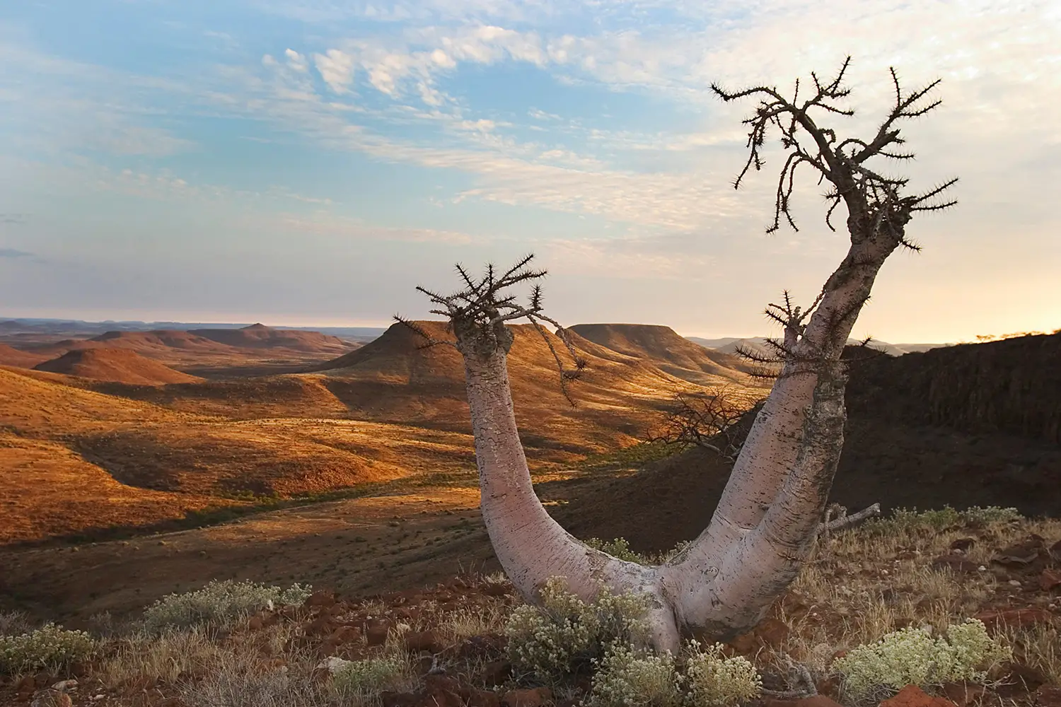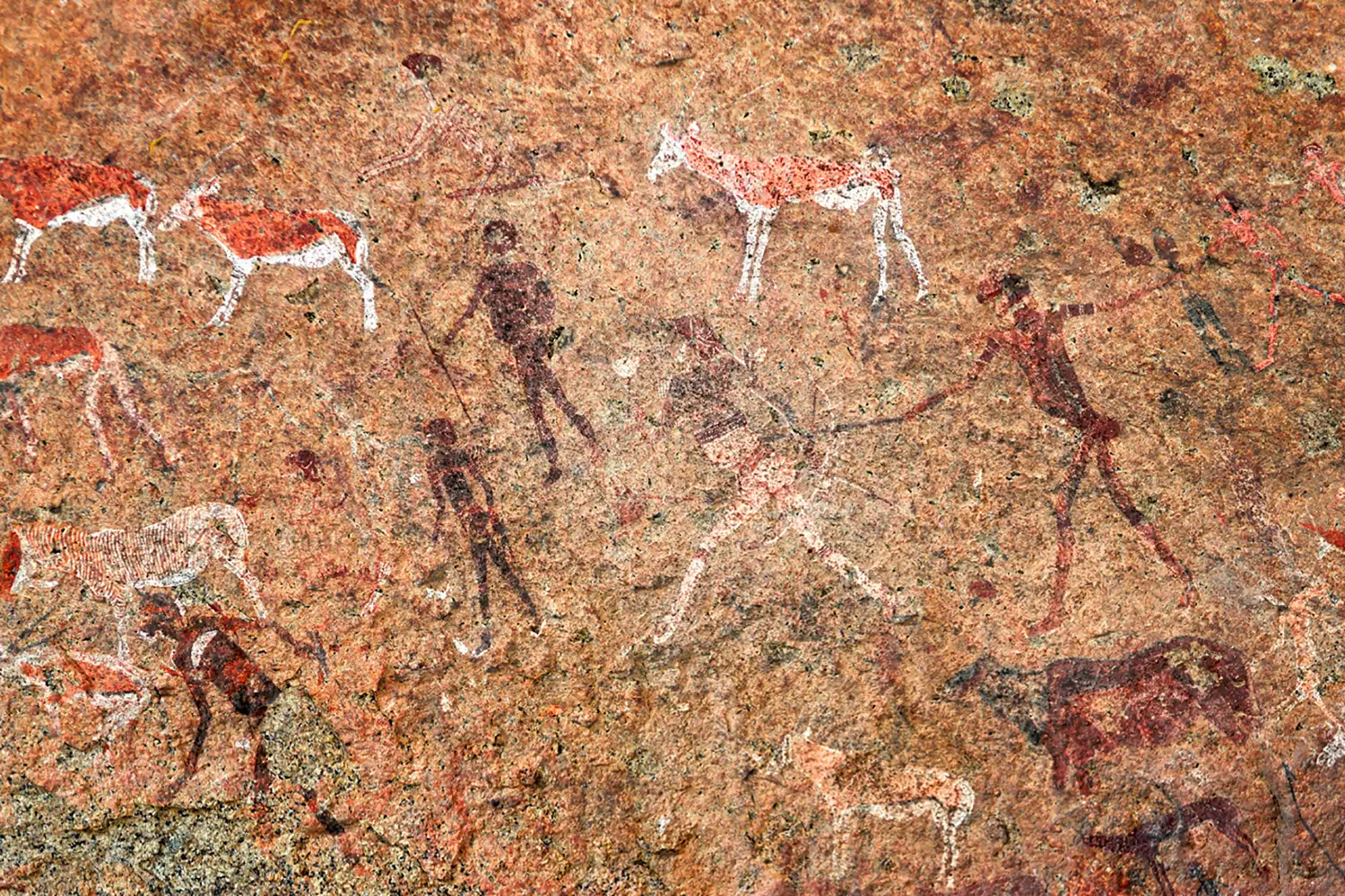 Les monts et vallées désertiques du Damaraland, territoire sauvage où errent les éléphants du désert et où se cachent d’impressionnantes fresques rupestres, sont les témoins de l’histoire des premiers peuples de la région.