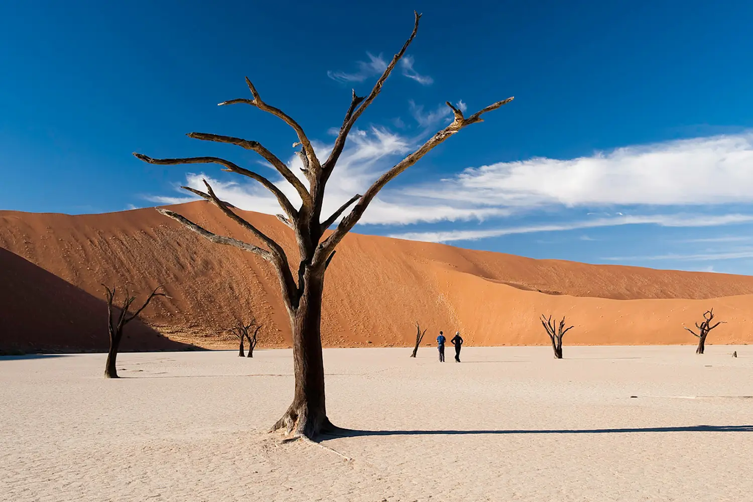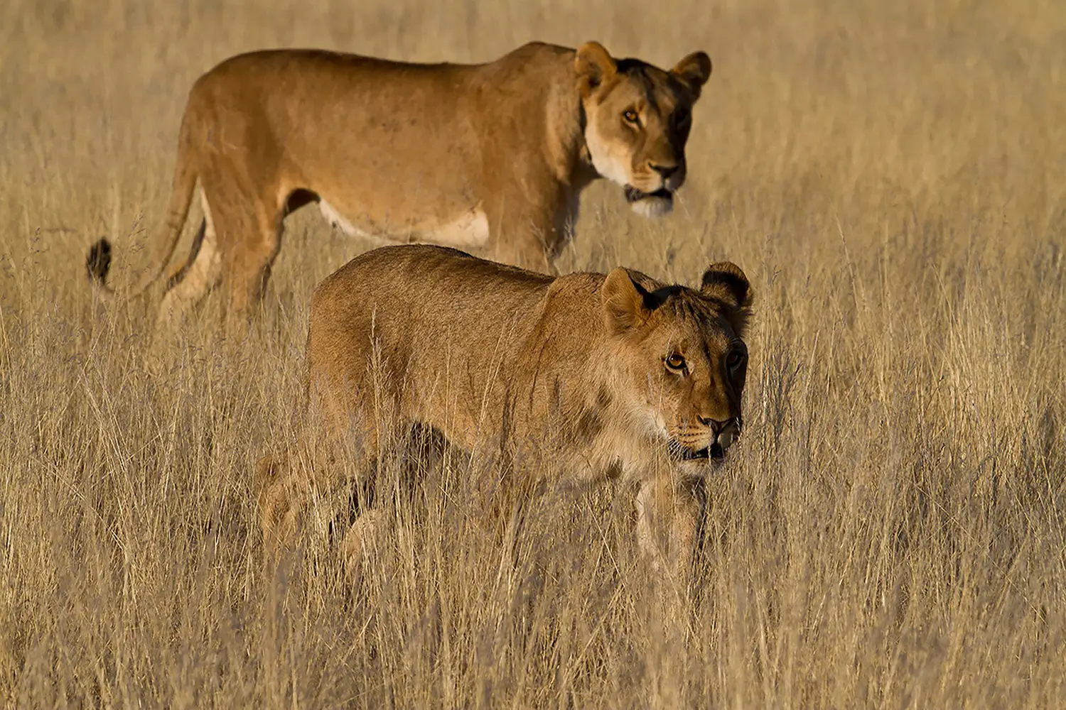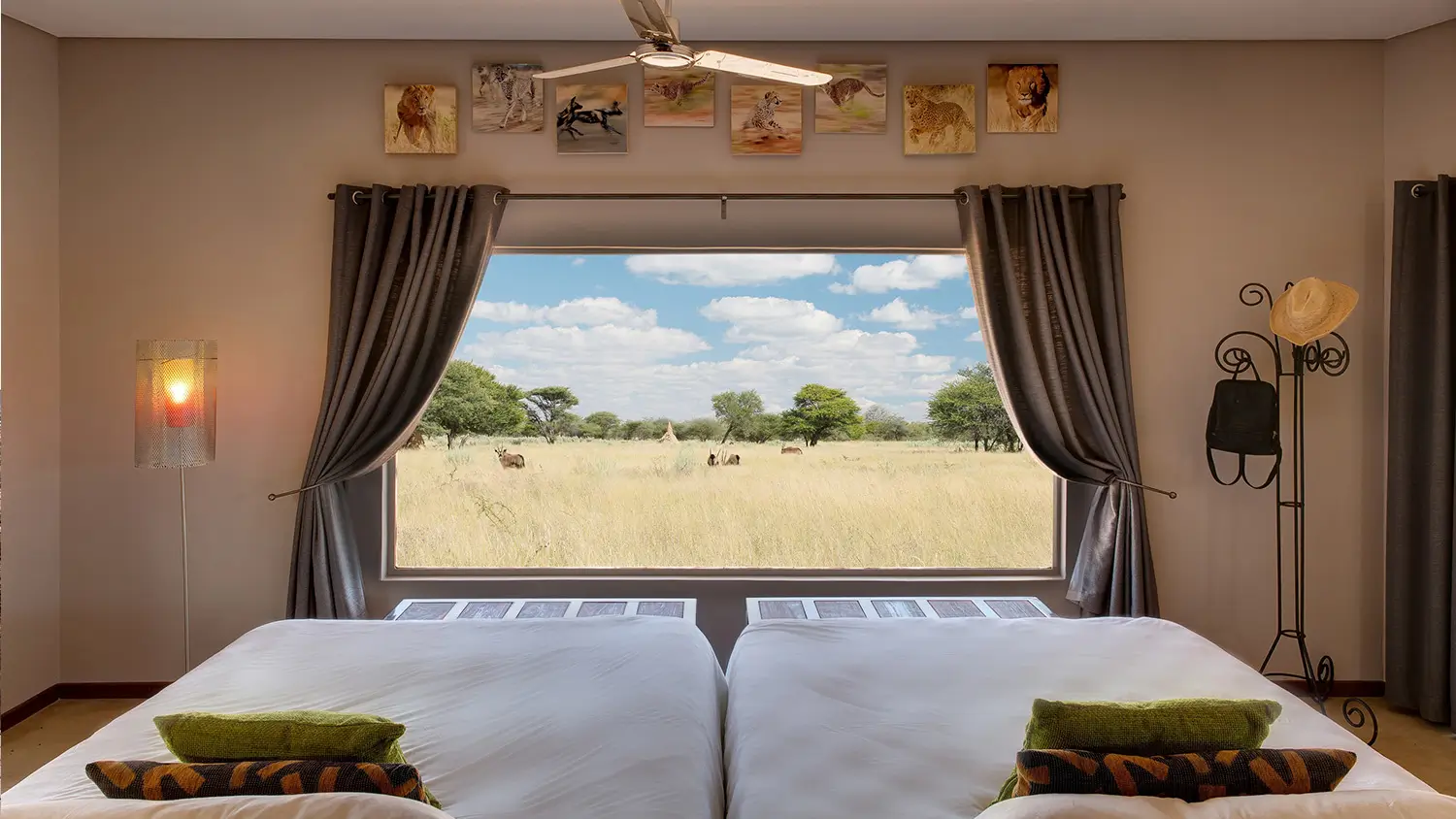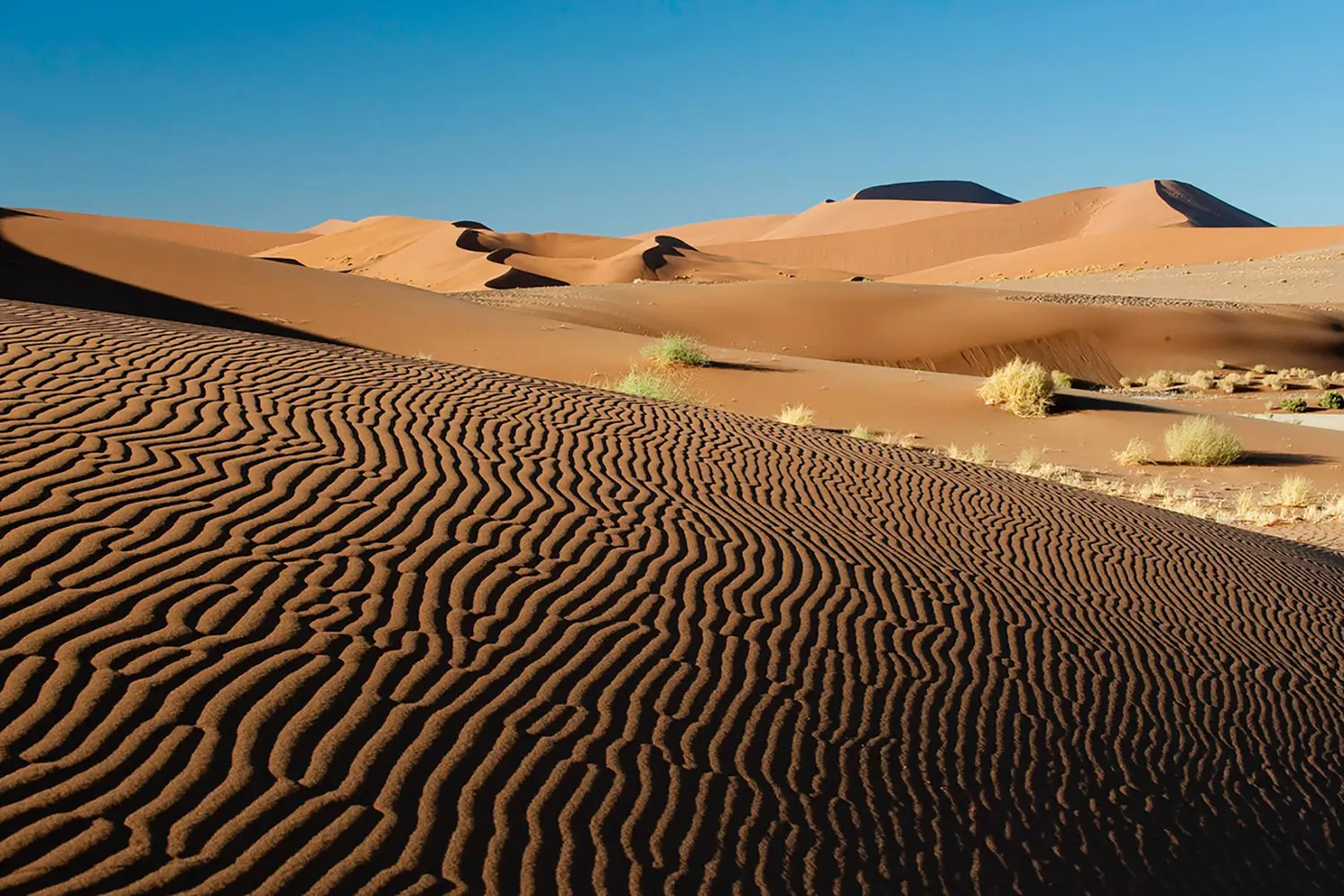 Puis vient l’un des moments les plus magiques : la découverte du désert du Namib et du site emblématique de Sossusvlei. Les dunes rouges, parmi les plus hautes du monde, s’embrasent sous le soleil du matin et offrent un spectacle d’une intensité rare. Enfin, votre itinéraire se termine dans les teintes ocre et dorées du Kalahari, désert vivant où le silence et la lumière composent une symphonie apaisante.