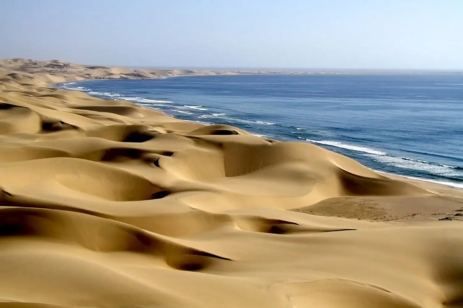 S’étendant sur plus de 500 kilomètres, la Skeleton Coast fascine par sa beauté sauvage. Ce littoral désertique, bordé par l’océan Atlantique et ses épaves de navires, semble figé dans le temps. Accessible uniquement avec un permis, cette région isolée abrite phoques, chacals et oiseaux marins. Séjourner dans l’un des rares lodges de la zone permet de vivre une expérience hors du commun, entre dunes, vent et silence absolu, dans un décor d’une pureté saisissante.