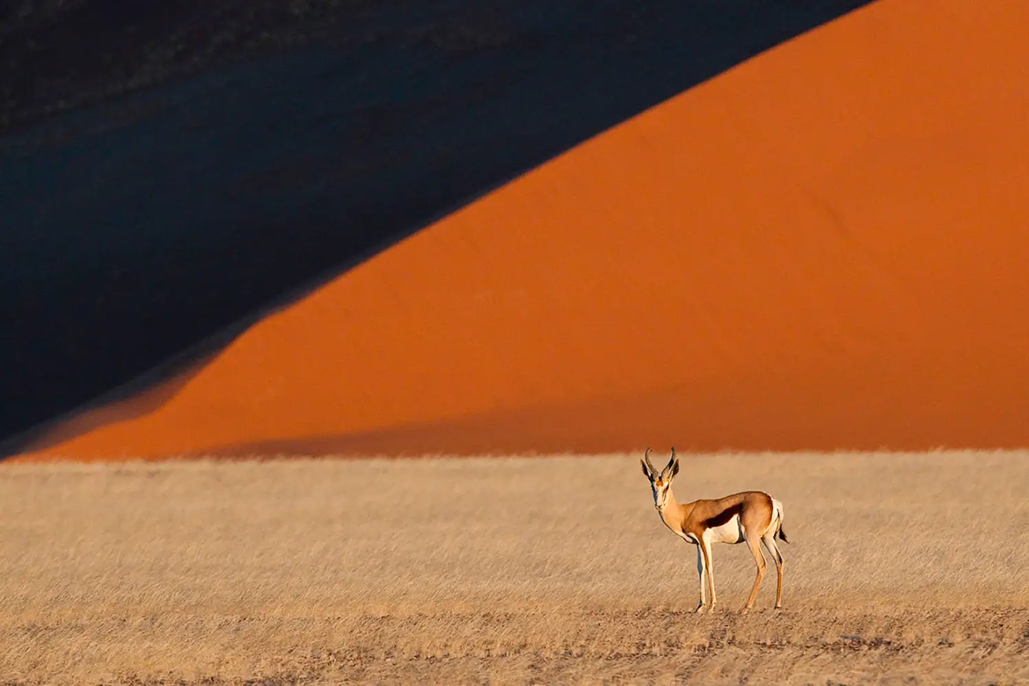 Le NamibRand Nature Reserve s’étend sur plus de 200’000 hectares de dunes rouges, montagnes et plaines désertiques. Ce sanctuaire privé du sud-ouest de la Namibie offre calme absolu et paysages grandioses. La faune y est libre : oryx, springboks et autruches y circulent paisiblement. Séjourner au lodge Wolwedans garantit intimité, confort et activités d’observation exclusives. Entre silence, beauté et harmonie, l’expérience au cœur du désert namibien est un hymne à la nature et à la quiétude.